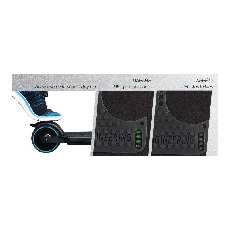 | Freinage | Frein assisté via le moteur(ou frein classique quand le moteur est éteint) |